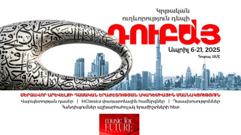 Академия Ближневосточной классической музыки совместно с фондом «Музыка во имя будущего» предлагают уникальную возможность путешествия. Фонд уже в третий раз инициирует «Образовательную поездку в Дубай». Академия пройдет с 6 по 21 апреля 2025 года.