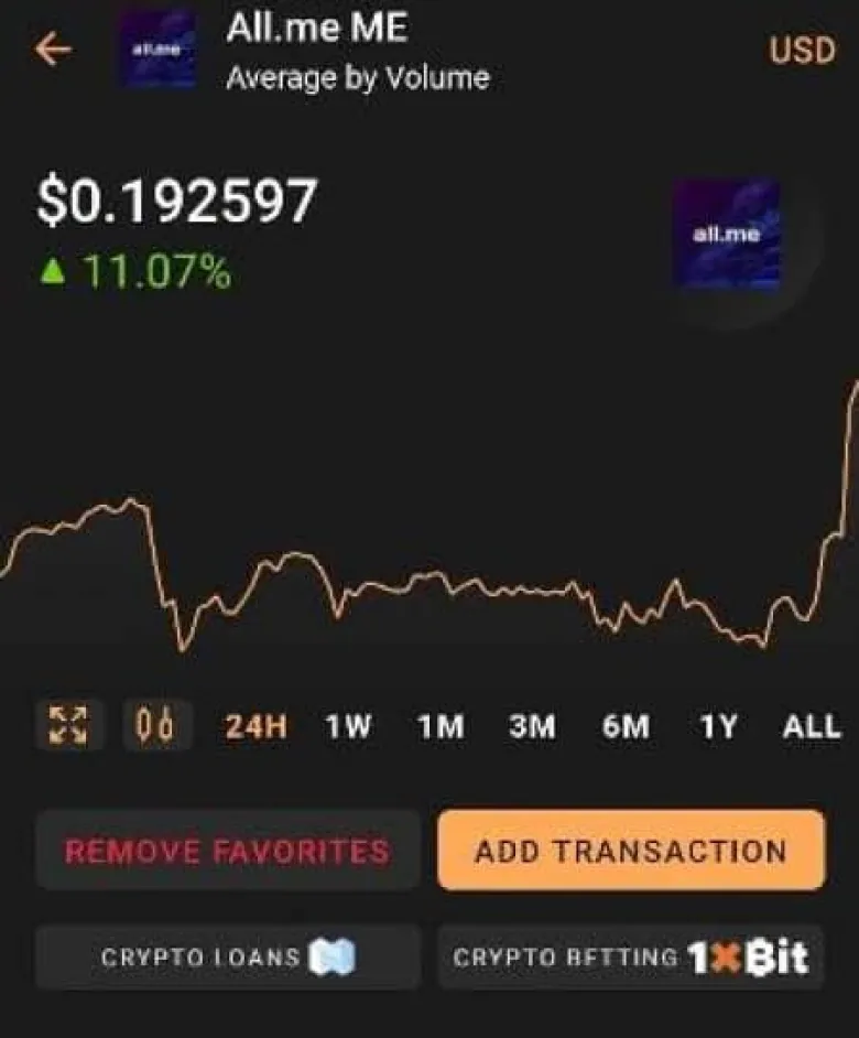 ALL.ME (ME) թոքենի`all.me թվային հարթակի ներքին արժույթի արժեքը 4 ամսում աճել է 1375%: