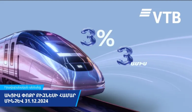 ՎՏԲ-Հայաստան Բանկընվազեցրելէփոքրբիզնեսիվարկերիտոկոսադրույքներըմինչևտարեկան 3%՝առաջին 90 օրվահամար։Պայմաններըհասանելիեն «Նորգործընկեր» և «Էքսպրես» պրոդուկտների շրջանակներում՝ մանրածախ առևտրի, արտադրությանևսպասարկման ոլորտիձեռնարկություններիհամար: Ֆինանսավորումըկարելիէուղղելընթացիկգործունեությանը, վարկերիմարմանըևներդրումայինծրագրերիիրականացմանը։