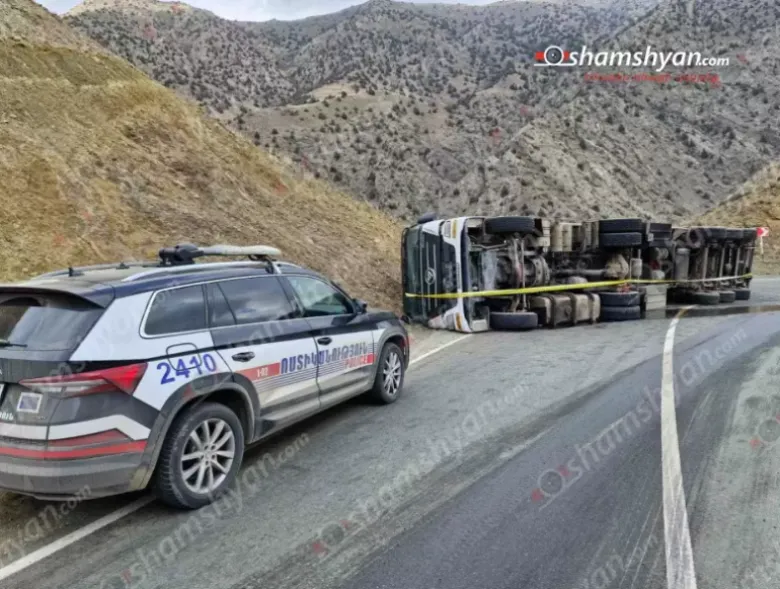 Տաթև-Լծեն ճանապարհին իրանական բեռնատարը, դեռևս անհայտ հանգամանքներում, կողաշրջվել է
