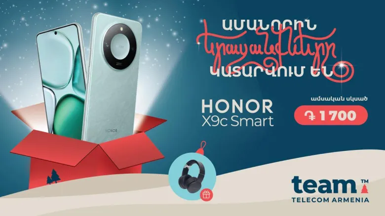 Team Telecom Armenia-ն հայտարարում է ամանորյա ակցիա՝ Honor X9c Smart մոդել ձեռք բերելու համար՝ սկսած ամսական ընդամենը 1670 դրամից: Team-ն առաջինն է տարածաշրջանում, որ մեկնարկել է այսնորագույն մոդելի վաճառքը մեր պաշտոնական գործընկեր Honor-ի հետ: