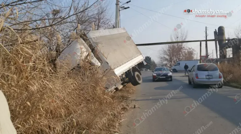 Ազատաշեն գյուղի ճանապարհին բեռնատարը կիսակողաշրջվել և հայտնվել է ջրատարում