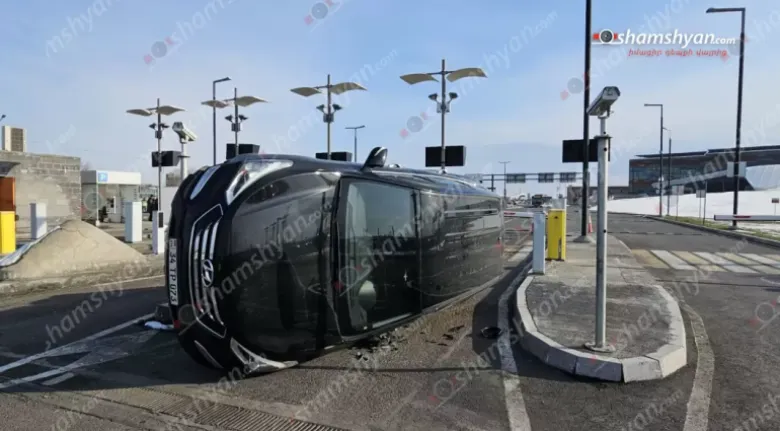 «Զվարթնոց» օդանավակայանի տարածքում «Hyundai»-ն բախվել է պաշտպանիչ բետոնե հատվածին և կողաշրջվել