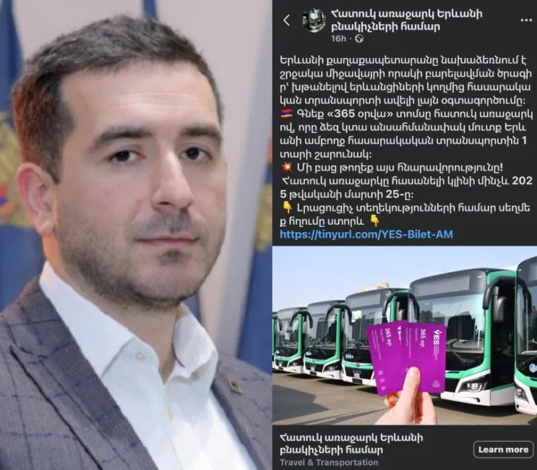 Սիրելի՛ երևանցիներ, հարգելի՛ գործընկերներ,Համացանցում տարածվել է «Հատուկ առաջարկ Երևանի բնակիչների համար» վերնագրով էջ, որտեղ առաջարկվում է մատչելի տարբերակով տոմս ձեռք բերել։