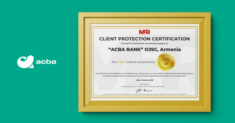 Ակբա բանկը միջազգային հեղինակավոր MFR գործակալության կողմից արժանացել է «Հաճախորդների պաշտպանության հավաստագրման» (Customer protection certification) ամենաբարձր՝ ոսկե մակարդակի։