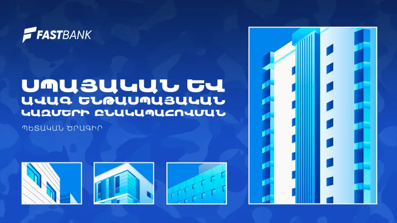 Ֆասթ Բանկը «Սպայական և ավագ ենթասպայական կազմերի զինծառայողների բնակապահովման» պետական աջակցության ծրագրին մասնակցում է 2024թ․-ից և կարևորում է դրա իրագործումը։ Ծրագրի մանրամասներին ծանոթանալու համար անհրաժեշտ է անցնել հետևյալ հղումով։