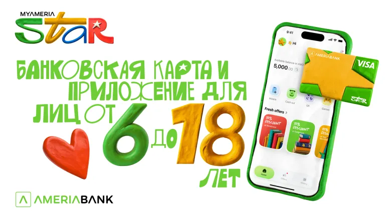 MyAmeria Star: Америабанк представляет банковскую карту и приложение для лиц от 6 до 18 лет