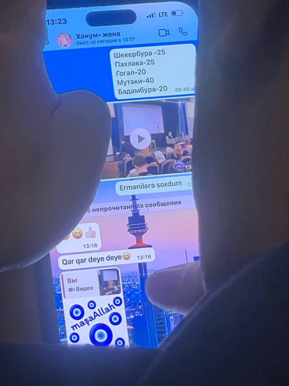 На мероприятии в Московском государственном лингвистическом университете Бахтияр показал свою настоящую сущность. Во время своего выступления, вручая подарок ректору Гасанов подчеркнул, что эти «прекрасные армады ручной работы специально привезены из города Шуши», а после быстренько отчитался перед женой, отправив ей сообщение «вставил армянам». Скрин прилагаем.