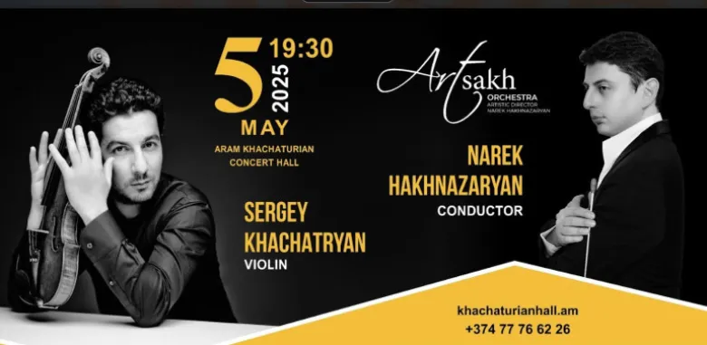 Մայիսի 5-ին, ժամը 19:30 Արամ Խաչատրյան համերգասրահում տեղի կունենա աննախադեպ համերգ, որի ընթացքում ելույթ կունենա «Արցախ» կամերային նվագախումբը՝ միջազգային ճանաչում ունեցող հայ երաժիշտների մասնակցությամբ։ Նվագախմբի գեղարվեստական ղեկավար ու դիրիժոր` Նարեկ Հախնազարյան, մենակատար՝ Սերգեյ Խաչատրյան։