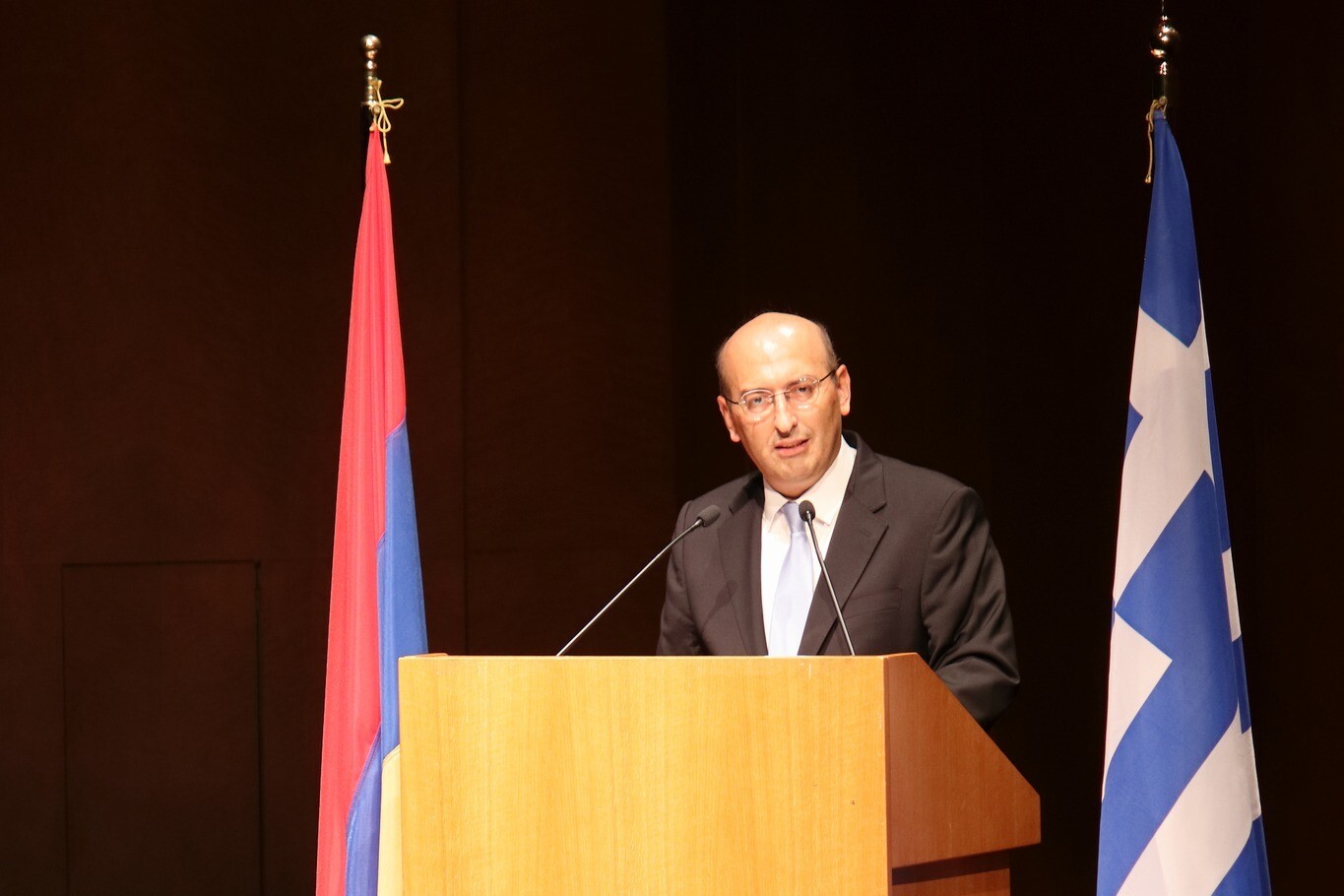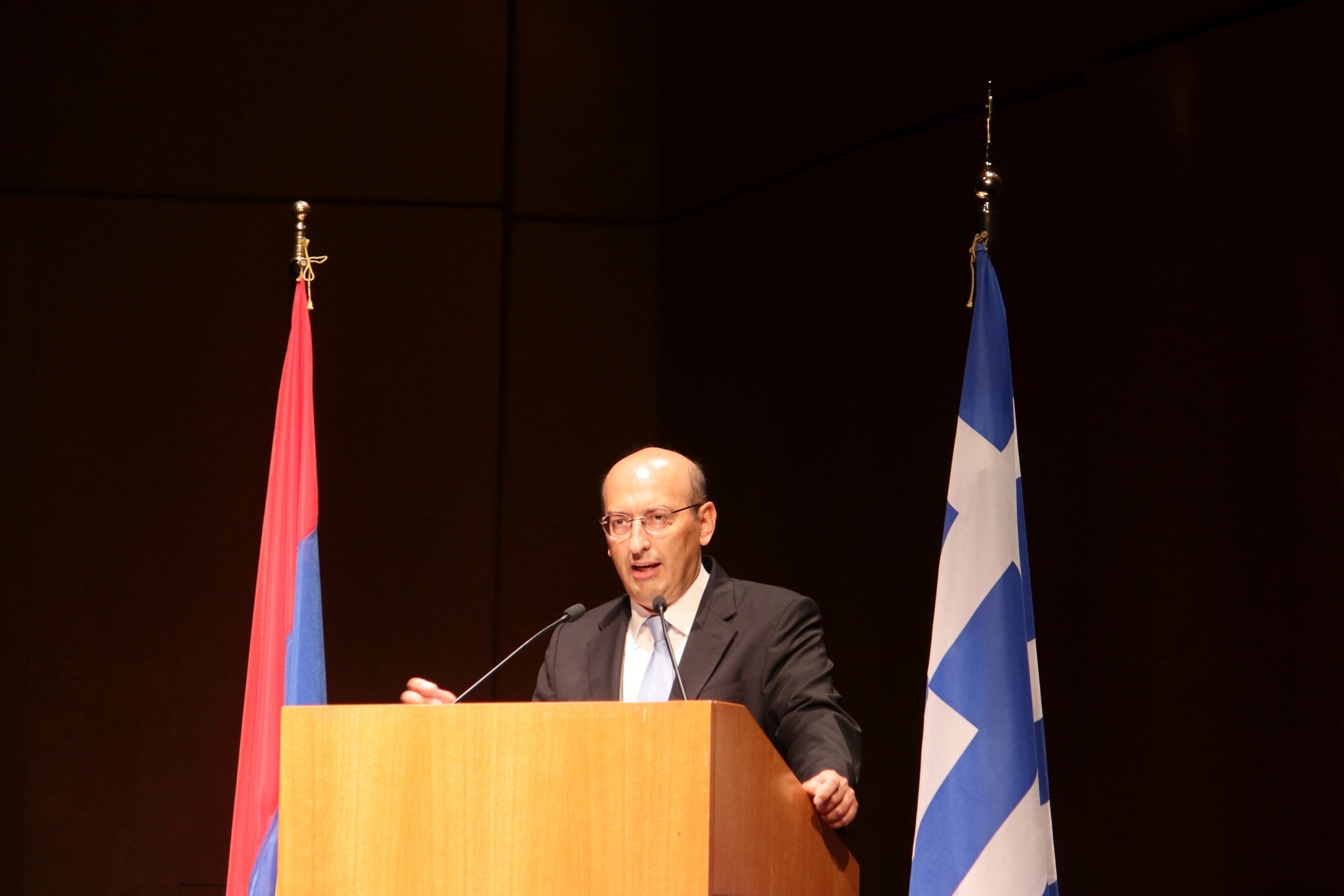 Միջոցառմանը ողջույնի խոսքով հանդես է եկել Հունաստանում Հայաստանի Հանրապետության արտակարգ և լիազոր դեսպան Տիգրան Մկրտչյանը։