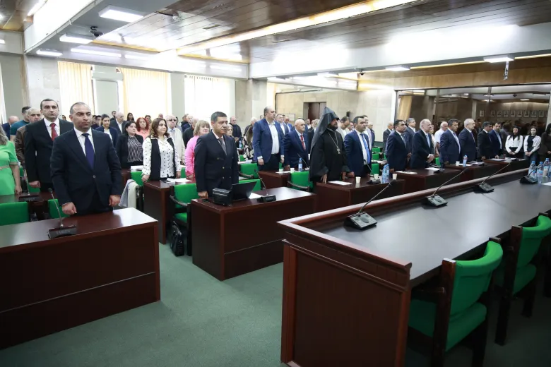 Նիստը մեկնարկել է հանդիսավորությամբ՝ ՀՀ պետական օրհներգով և Տավուշի թեմի առաջնորդի տեղապահ Տեր Սամվել վարդապետ Մխիթարյանի օրհնությամբ։