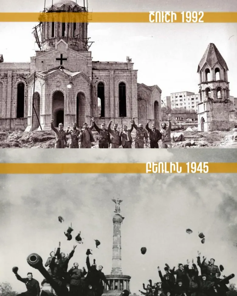 Այսօր մենք առավել քան հաստատակամ ենք մեր պապերի, հայրերի ու եղբայրների արյան գինն արժևորելու, կենսունակ պետություն կերտելու և արցախցի մեր հայրենակիցների անվտանգ ու արժանապատիվ վերադարձն ապահովելու հարցերում։ Բռնազավթված Արցախում այսօր Մեծ Հայրենական պատերազմի հաղթանակին ու զոհերին նվիրված հուշարձանները ոչնչացնող Բաքվի բռնապետական վարչակարգին հայ ժողովրդի ազգային իշխանությունները խիստ պատասխանատվության են ենթարկելու։