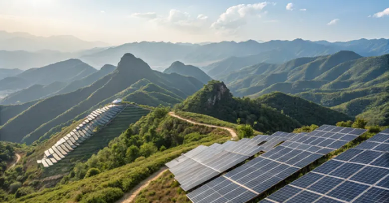 Ինտերնետում տարածվել են տեսանյութեր, որտեղ անօդաչու թռչող սարքը նկարահանում է միլիոնավոր արևային վահանակներով ծածկված լեռներ։ Տեսարանում երևում են փայլող վահաններ, որոնք ձգվում են անվերջ։ Գտնվելու վայրը Չինաստանի Գույչժոու շրջանն է։ Այս տարածքը նախկինում համարվում էր ոչ այնքան հարմար գյուղատնտեսության համար. բարձր է, զով և դժվար է մշակաբույսեր աճեցնել։ Բայց այդ նույն պայմանները կատարյալ էին մեկ այլ բանի համար՝ կանաչ էներգիայի արտադրության։
