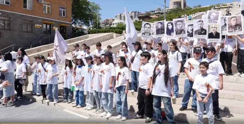 Բացի այդ, Երևանում տեղի ունեցավ «Հայրենական պատերազմի հայ հերոսները» երթը։ «Հաղթանակ 9/45» շարժման ակտիվիստները իջան Կասկադով, պարեցին Քոչարի՝ այն նույն պարը, որը հայերը պարել են Ռայխստագի պատերի մոտ, ապա պատերազմի հերոսների լուսանկարներով շարժվեցին դեպի մարշալ Բաղրամյանի հուշարձան և ծաղիկներ խոնարհեցին։