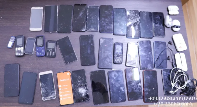 Զննության արդյունքում սառնարանում նախապես պատրաստված թաքստոցից ծառայողները հայտնաբերել են 32 բջջային հեռախոս, 2 wi-fi սարք, 5 զույգ ականջակալ և 3 USB լար։
