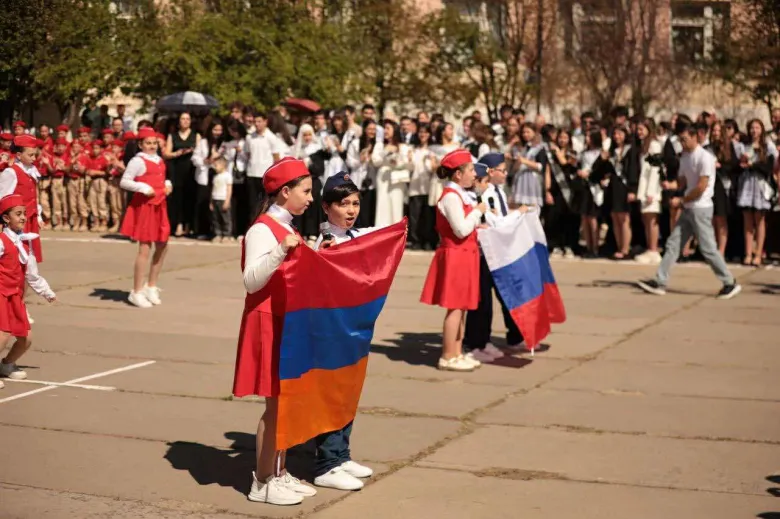 В ереванской школе № 19 выпускников напутствовали советник Посольства России в Армении Дмитрий Селезнев, заместитель командира 102 военной базы полковник Дмитрий Препелица и руководитель Россотрудничества в Армении Вадим Фефилов.