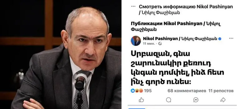 Այսօր առավոտյան արդեն հայ հասարակությունն արթնացավ Նիկոլ Փաշինյանի խայտառակ գրառումներով սոց ցանցերում։ «Սրբազան, գնա շարունակիր քեռուդ կնգան դոմփել, ինձ հետ ի՞նչ գործ ունես»,- գրել էր Փաշինյանը, քիչ անց էլ հավելել. «Իսկ անհրաժե՞շտ է առերեսվել հարցին, թե մեր եպիսկոպոսաց դասից քանի հոգի է հավատարիմ կուսակրոնության ուխտին»։ Իրականում սա հստակ համակարգված, հակաեկեղեցական քայլ է, որին մասնակից են ոչ միայն Հայաստանի վարչապետի պաշտոնը զբաղեցնողը, նրա տիկինը, այլ մի ամբողջ թիմ, այդ թվում նաև Արևմուտքում, Թուրքիայում և Ադրբեջանում։ Ըստ վերլուծաբանների՝ եկեղեցուն կոնկրետ թիրախավորել են, քանի որ համազգային մոբիլիզացիա ընդդեմ գործող իշխանությունների այսօր ունակ են կազմակերպել միայն եկեղեցականներն ու հոգևոր գործիչները։ Վկան՝ Բագրատ Սրբազանի շարժումը։