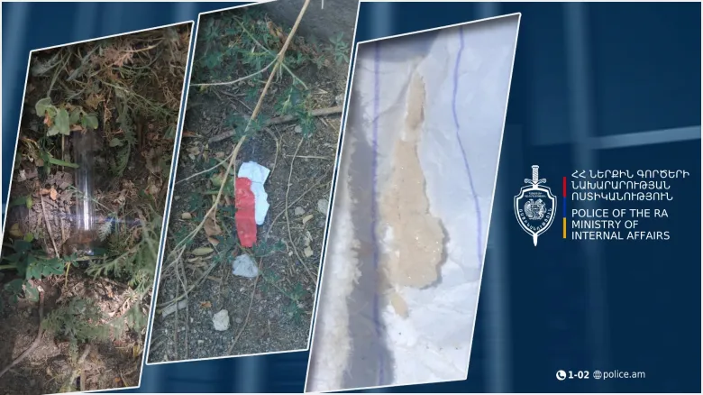 Դեպքի վայրի զննությամբ հայտնաբերվել են «կրիստալ» տեսակի թմրամիջոցի նմանվող զանգվածով փաթեթ և մոխրացած հետքերով գլանակ։
