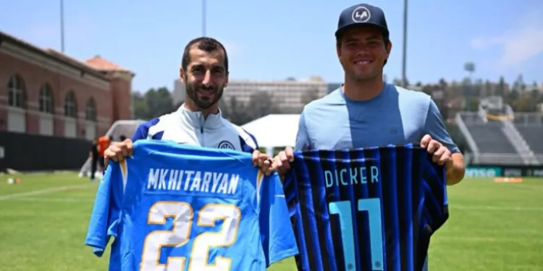 Հայաստանի ազգային հավաքականի բոլոր ժամանակների լավագույն ռմբարկու, Միլանի «Ինտերի» կիսապաշտպան Հենրիխ Մխիթարյանն ու NFL-ի (Ամերիկյան ֆուտբոլի ազգային լիգա) աստղ, «Լոս Անջելես Չարջերսի» հարվածող Քեմերոն Դիքերը փոխանակվել են մարզաշապիկներով ԱՄՆ-ում։