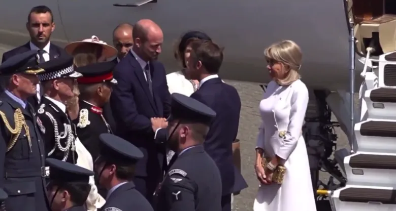 Ֆրանսիայի նախագահին ու նրա տիկնոջն օդանավակայանում դիմավորել են արքայազն Ուիլյամը և նրա կինը՝ Ուելսի արքայադուստր Քեյթը: