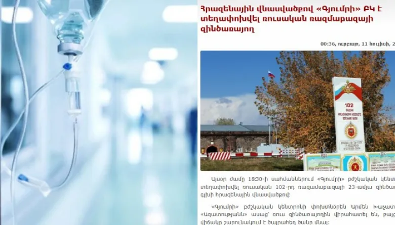 Ինչպես հայտնել են՝ երեկ «Գյումրի» բժշկական կենտրոն է տեղափոխվել ռուսական 102-րդ ռազամաբազայի 23-ամյա զինծառայող՝ գլխի հրազենային վնասվածքով։
