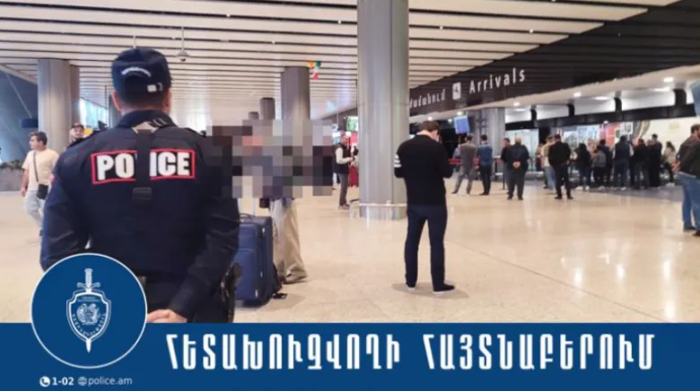 Համայնքային ոստիկանության «Զվարթնոց» օդանավակայանի բաժնի ծառայողների ձեռնարկած օպերատիվ-հետախուզական միջոցառումների շնորհիվ հուլիսի 14-ին՝ ժամը 4-ին, չվերթի ժամանումից հետո ձերբակալվել և բաժին է տարվել Արմավիրի մարզի 53-ամյա բնակչուհին: Այս մասին հայտնում են ՆԳՆ-ից: