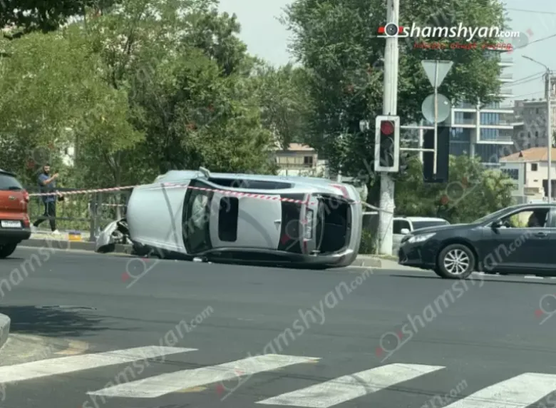 Երևանում «Honda Accord»-ը բախվել է հետիոտնի համար նախատեսված մայթի բազալտե եզրաքարերին և կողաշրջվել․ կա վիրшվոր