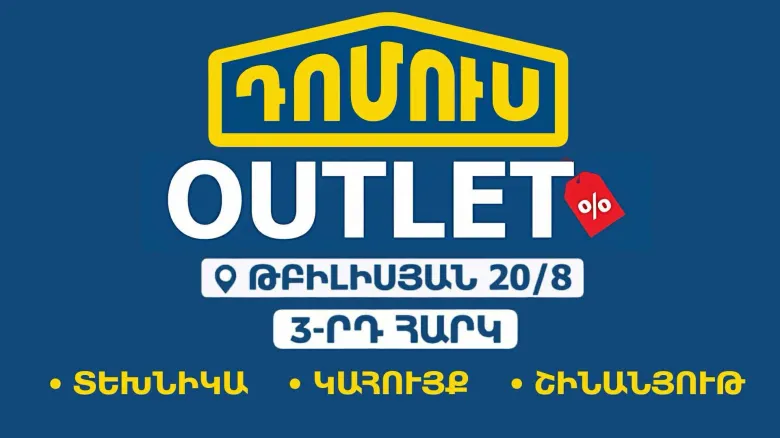 OUTLET-ը արդեն հասանելի է բոլորին։ Այցելե՛ք Թբիլիսյան 20/8 հասցեում գտնվող Domus խանութ-սրահի 3-րդ հարկ և օգտվե՛ք բացառիկ զեղչերից՝