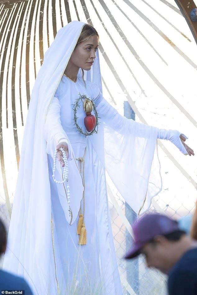 34-летняя певица Рита Ора предстала в неожиданном и дерзком образе во время съёмки в Лос-Анджелесе. Артистка облачилась в белоснежные свободные одежды и длинную фату до пола, держа в руках чётки и позируя с молитвенно сложенными руками, пишет Daily Mail.