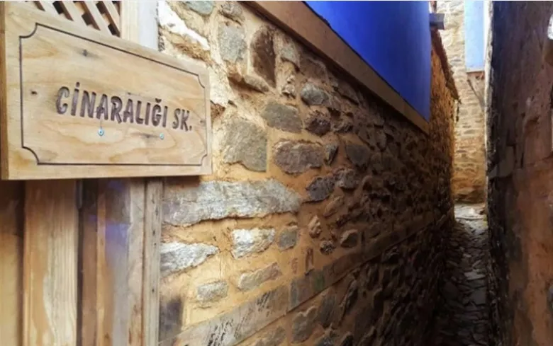 Փողոցը կոչվում է «Ջինարալըղը»։ Այս անվան հետ կապված մի լեգենդ է պահպանվել այդ գյուղում։ Ասում են՝ թուրքական «Անկախության պատերազմի» տարիներին հունական զորքերը գյուղացիներին հավաքել են մզկիթում, որպեզի ողջ-ողջ հրկիզեն։ Սակայն մարդիկ կարողացել են փախչել ու այս նեղ փողոցով հասնել թուրքական զորքերի դիրքերը։ Երբ հույները հասել են նրբանցքի մուտքին, կարծել են, թե այն փակուղի է, և ապշած ասել՝ «Մարդ այստեղից չի կարող անցնել, սա միայն չարքերի գործը կարող է լինել»։ Այդ խոսքերից հետո փողոցն անվանվել է «Ջինարալըղը», որը թարգմանաբար նշանակում է «չարքերի նրբանցք»։
