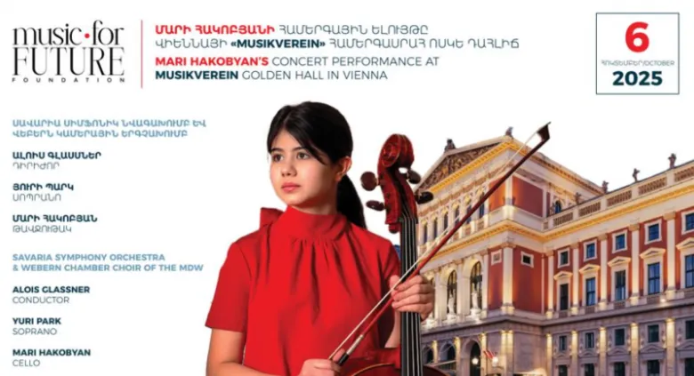 В Золотом зале концертного зала «Musikverein» в Вене 6 октября в 15:30 выступит стипендиатка фонда «Музыка во имя будущего», виолончелистка Мари Акопян. Дирижер концерта - Алоис Гласснер, сопрано - Юрий Парк. Выступят симфонический оркестр Савариа и камерный хор Веберна (Венский музыкальный университет).