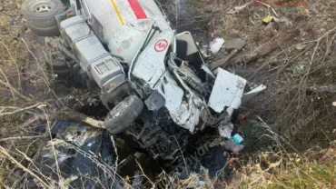 Լոռու մարզում 20 տոննա հեղուկ գազ տեղափոխող բեռնատարը բшխվել է երկաթե արգելապատնեշներին և կողաշրջված...