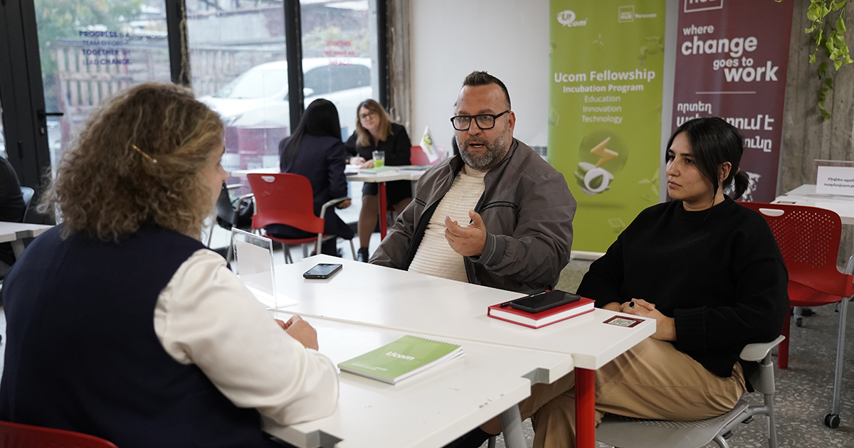 Компания Ucom и Impact Hub Yerevan организовали специальное мероприятие в формате Speed-Mentoring для участников инкубационной программы Ucom Fellowship 2025. Авторы проектов, направленных на решение экологических проблем, получили возможность встретиться с ведущими экспертами в области устойчивого развития, бизнеса и технологий, чтобы усовершенствовать свои инициативы, основанные на принципах технологических решений и циркулярной экономики.