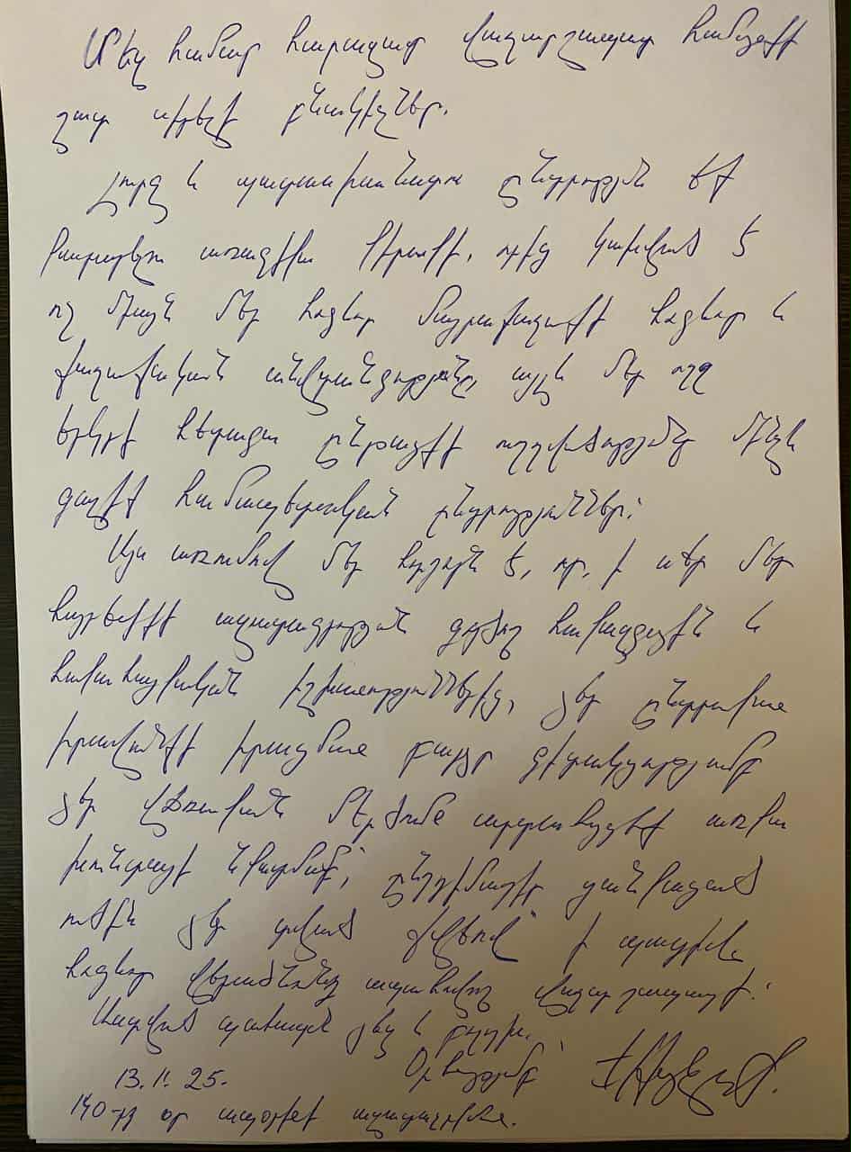 Միքայել Սրբազանի նամակը բանտից՝ ուղղված վաղարշապատցիներին