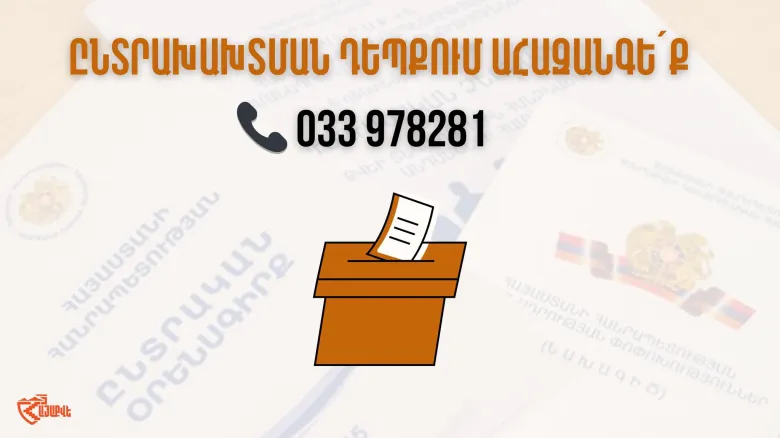 Եթե առերևույթ ընտրախախտում կնկատեք, մոտեցե´ք տեղամասում «ՀայաՔվեի» տարբերանշանով հերթապահող մեր դիտորդներին և ահազանգեք այդ մասին, կամ զանգահարեք մեր թեժ գծին`
