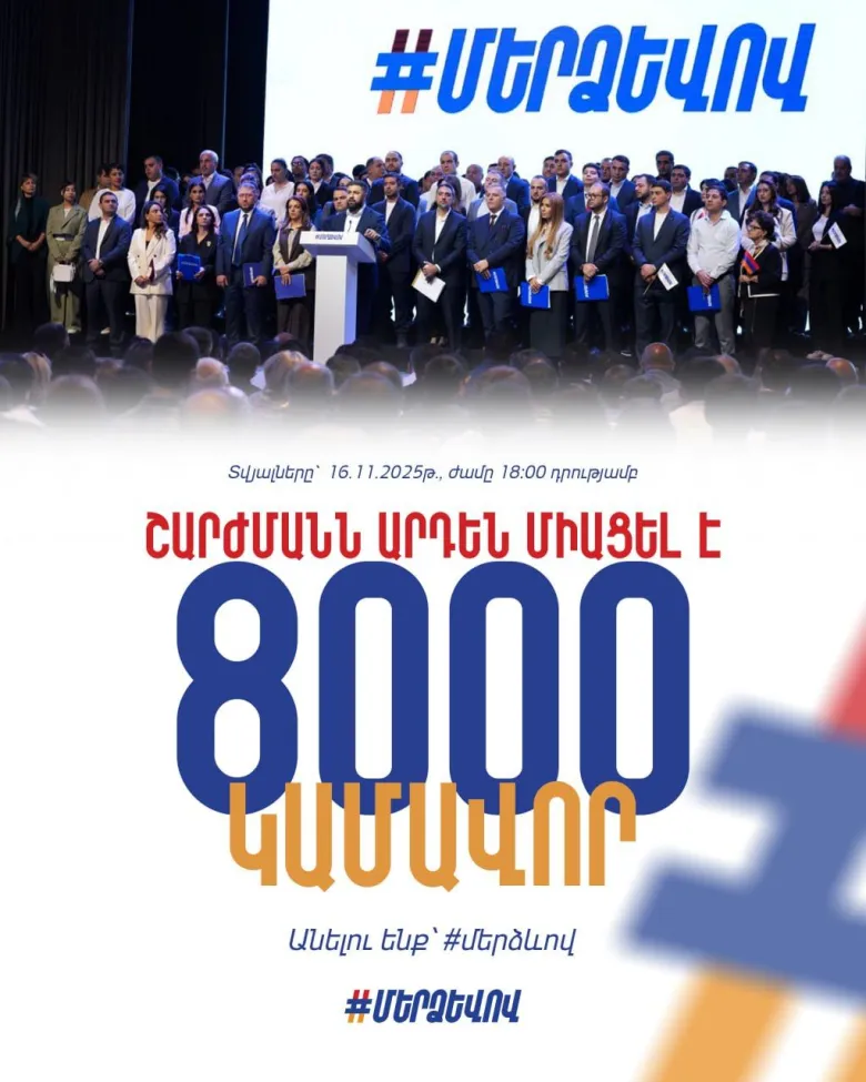 Սամվել Կարապետյանի առաջնորդած շարժմանն արդեն 8 հազար կամավոր է միացել։