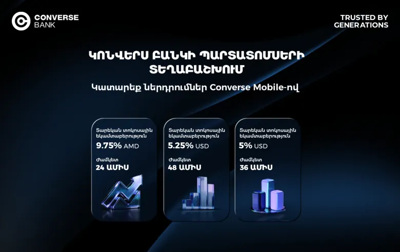 Կոնվերս Բանկը հայտարարում է իր պարտատոմսերի՝ ՀՀ դրամով մեկ և ԱՄՆ դոլարով երկու տրանշի (սերիա) տեղաբաշխման մեկնարկը։ Տեղաբաշխումը տեղի կունենա 2025թ․ նոյեմբերի 18-ից մինչև 2026թ․ փետրվարի 18-ը՝ հետևյալ պայմաններով.