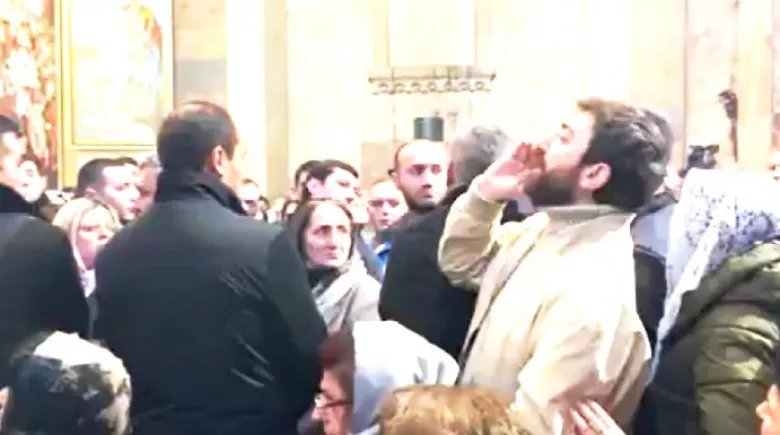 Во время очередной фальшивой «литургии» Никола Пашиняна в церкви Святого Саркиса, когда имя Католикоса вновь не было упомянуто, многие граждане выразили недовольство и начали громко скандировать имя Католикоса всех армян Гарегина II. После этого последовали уже ставшие привычными жестокие действия полиции.