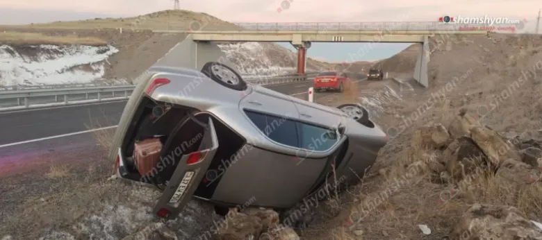 Շիրակում «Mercedes»-ը դուրս է եկել երթևեկելի գոտուց, բախվել քարերին ու հողաթմբին և կողաշրջվել. կա տուժած