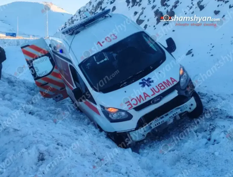 Գյումրիից հիվանդին Երևան տեղափոխող շտապօգնության ավտոմեքենան վթարի է ենթարկվել և հայտնվել ձնակույտում