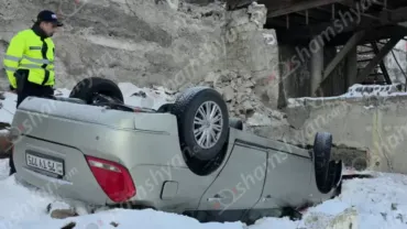 Գյումրիից հիվանդին Երևան տեղափոխող շտապօգնության ավտոմեքենան վթարի է ենթարկվել և հայտնվել ձնակույտու...