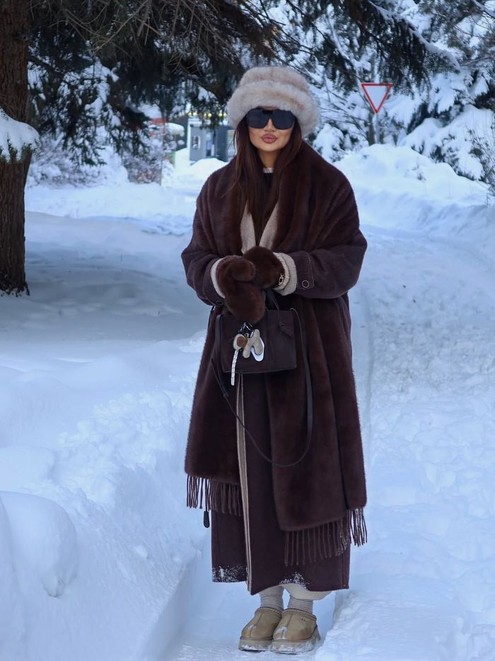 Формула: классическая база + выразительная верхняя одежда + лаконичные аксессуары Почему работает: мех становится стилевым инструментом, а не украшением ради эффекта.