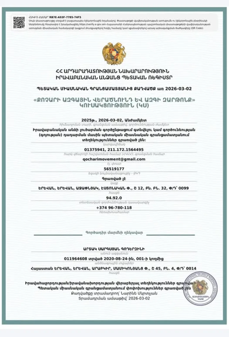 Այս Կուսակցության գրանցումով ես ինձ հետ չեմ տանում ո՛չ զայրույթ, ո՛չ ափսոսանք — միայն երախտագիտություն։