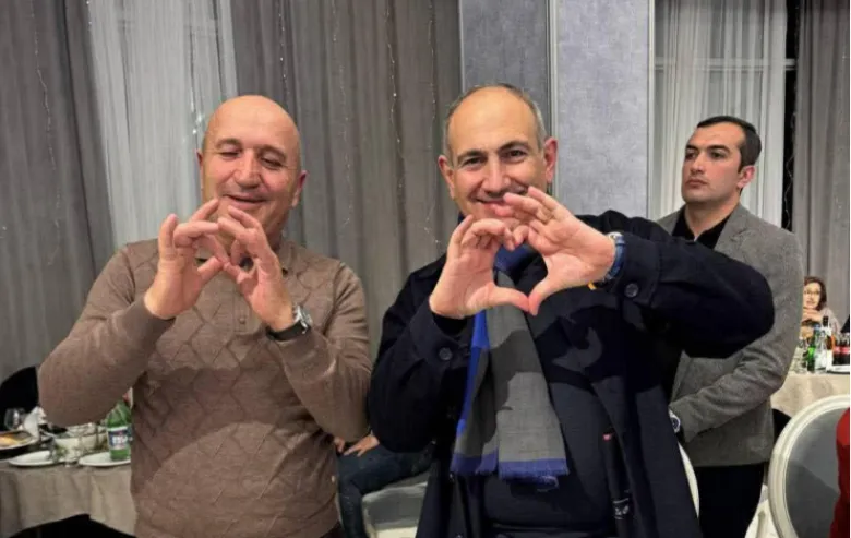 Լուսանկարում Նիկոլ Փաշինյանը ձեռքերով «սրտիկ» է ցույց տալիս, իսկ նրա կողքին կանգնած անձը ժեստ է անում, որը շատերի կարծիքով հիշեցնում է թուրքական ծայրահեղական կազմակերպության՝ Գորշ գայլերի հայտնի նշանը։