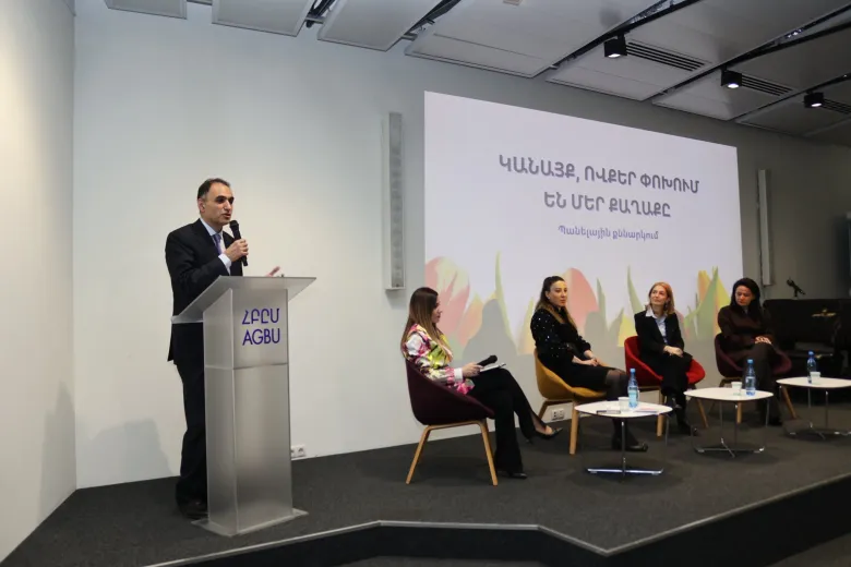 Բանախոսում էին իրավաբան Սիրանուշ Սահակյանը, ֆինանսիստ Անահիտ Ադամյանը, հանրային գործիչներ Նարինե Մանուկյանը, Սայիդա Պողոսյանը, կրթության ոլորտի փորձագետ Հռիփսիմե Խանզադյանը, քաղաքական գործիչ Աննա Կոստանյանը: Քննարկումը վարում էր եվրոպագետ Արևիկ Ղալումյանը: