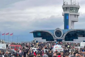 Ստեփանակերտի օդանավակայանում հավաքված արցախցիները պահանջում են ուղղաթիռներով տար...