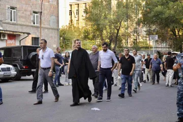 Բագրատ արքեպիսկոպոս Գալստանյանը ԱԱԾ շենքում գտնվող «Երևան-Կենտրոն» ՔԿՀ-ից փաստաբ...