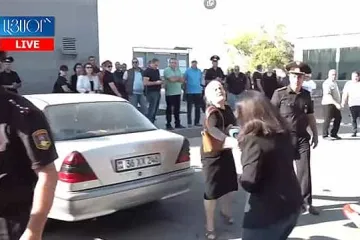Եռաբլուրում զոհվածի հարազատը բաժակով ջուր է շփել լրագրողի վրա (Տեսանյութ)