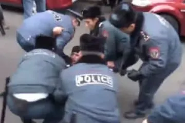 Ոստիկաններն ուժով մահացած զինվորների հարազատներին դուրս են բերում փողոցից