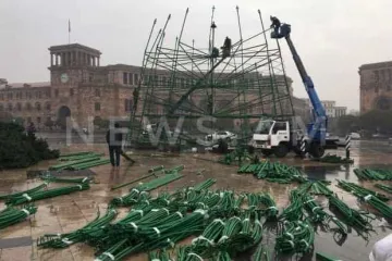 Հանրապետության հրապարակում սկսվել են երկրի գլխավոր տոնածառի տեղադրման աշխատանքնե...